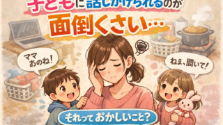 忙しいときや、疲れているときに限って「ママー!」「ねぇ聞いて!」と何度も呼ばれる。本当はちゃんと聞いてあげたいのに、正直「今はちょっと無理…」「めんどくさい」と感じてしまう。そんな自分に、少し罪悪感を感じていませんか?でもそれ、実はとても自...