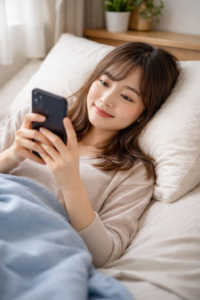 - 布団に入って横になりながら