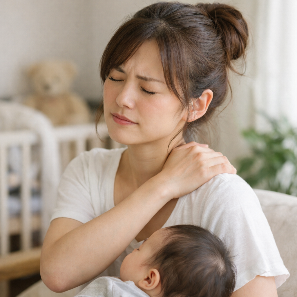 授乳や抱っこ、寝不足…。気づけばずっと肩に力が入っていて、「毎日重だるい」が当たり前になってしまうことも。