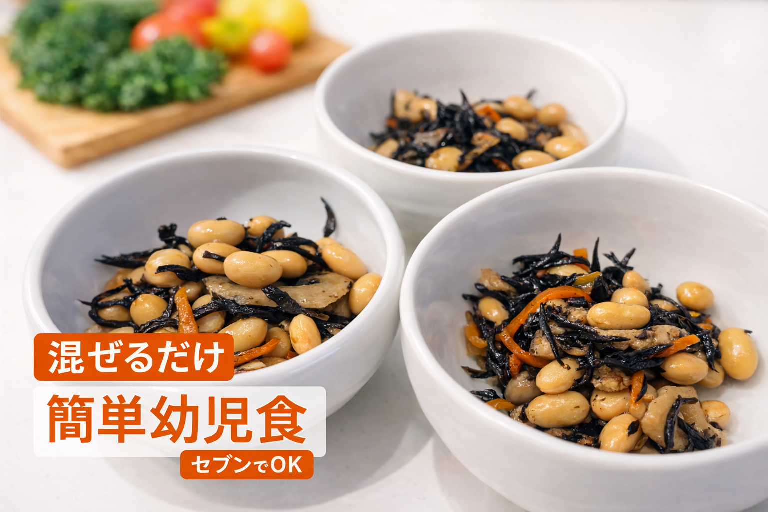 今回は、セブンイレブンのひじきのお惣菜に蒸し大豆を混ぜるだけで作れる、簡単な幼児向けおかずを紹介します。